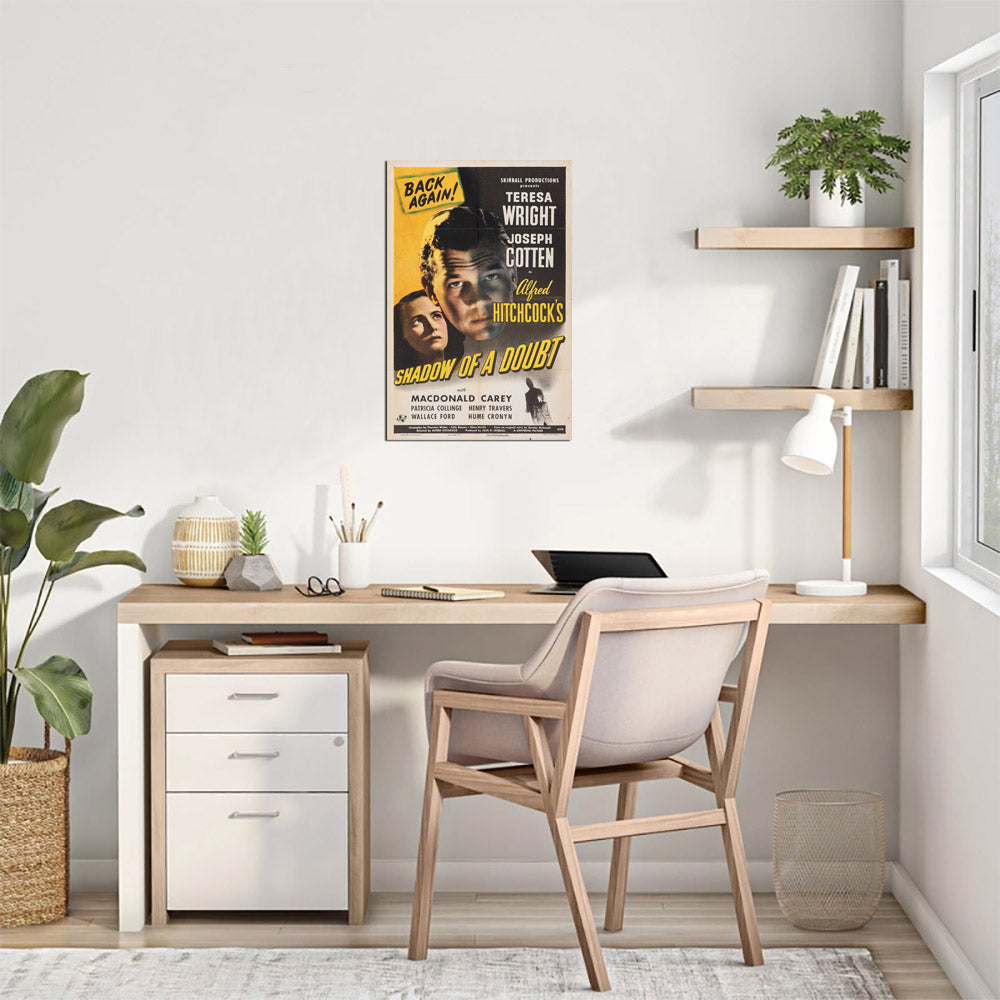 This reprint of Shadow of a Doubt (1943), directed by Alfred Hitchcock, captures the suspense and psychological tension of this classic thriller. The artwork emphasizes the film's chilling atmosphere, with Teresa Wright and Joseph Cotten at the heart of its eerie narrative.