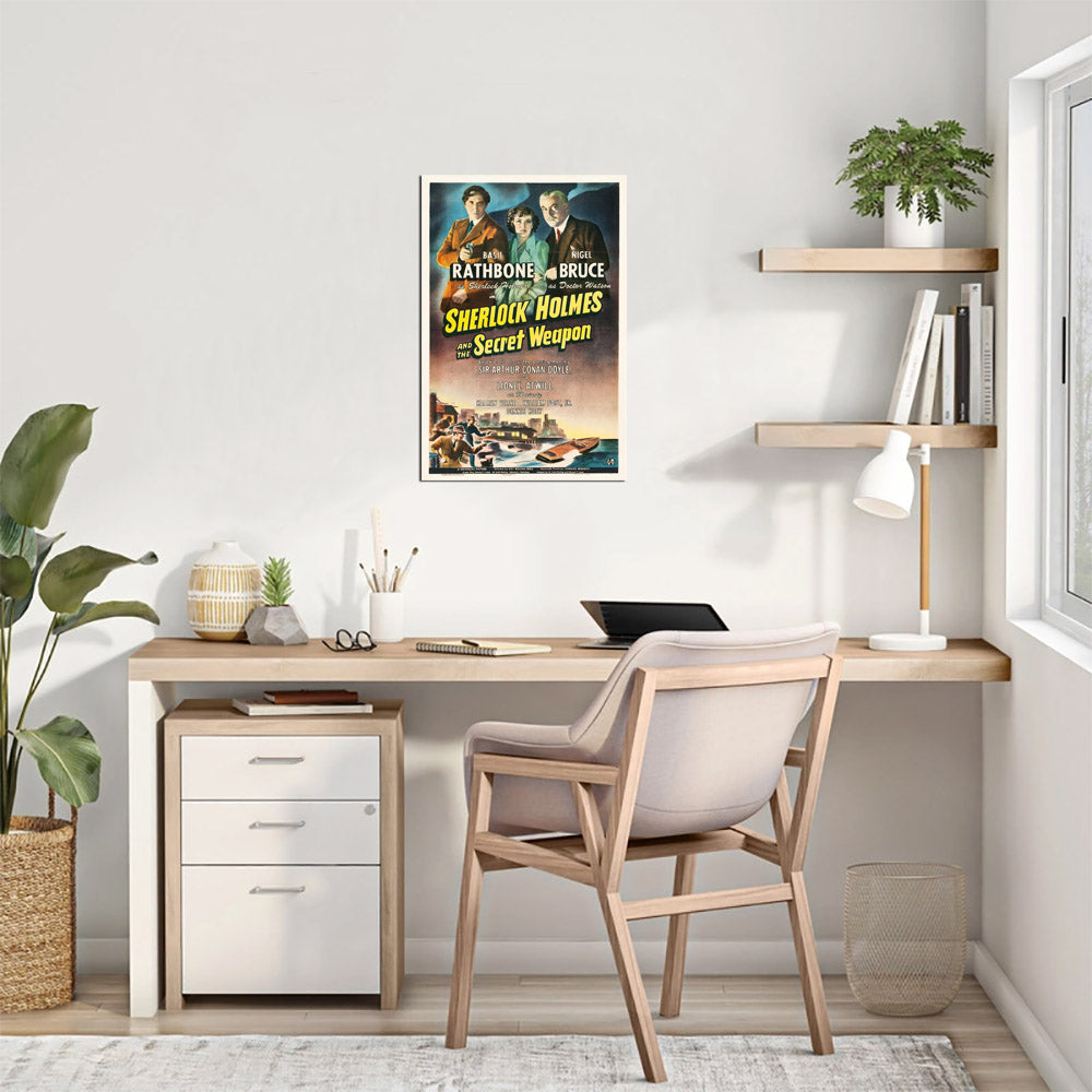 This reprint of Sherlock Holmes and the Secret Weapon (1942), starring Basil Rathbone and Nigel Bruce, features thrilling artwork that captures the suspense and intrigue of this Sherlock Holmes adventure, focused on the detective's efforts to foil a Nazi plot.