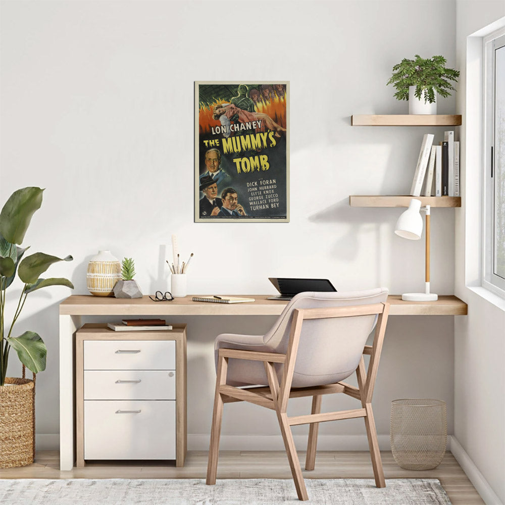 This Spanish reprint of The Mummy's Tomb (1942), a horror film from Universal Studios, features dramatic artwork that evokes the eerie, supernatural atmosphere of the film’s ancient curse.