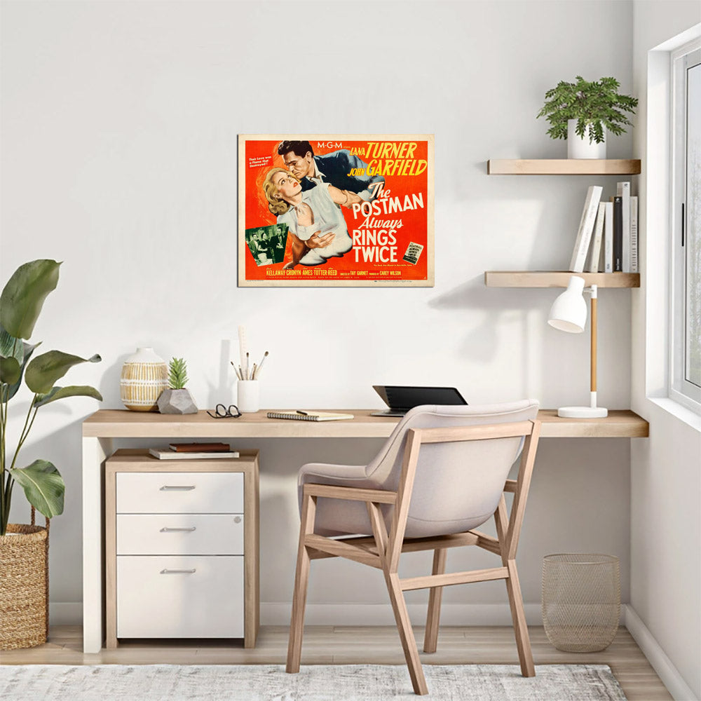 This reprint of The Postman Always Rings Twice (1946), a film noir thriller starring Lana Turner and John Garfield, features iconic Style A artwork that conveys the film’s dark and suspenseful narrative.