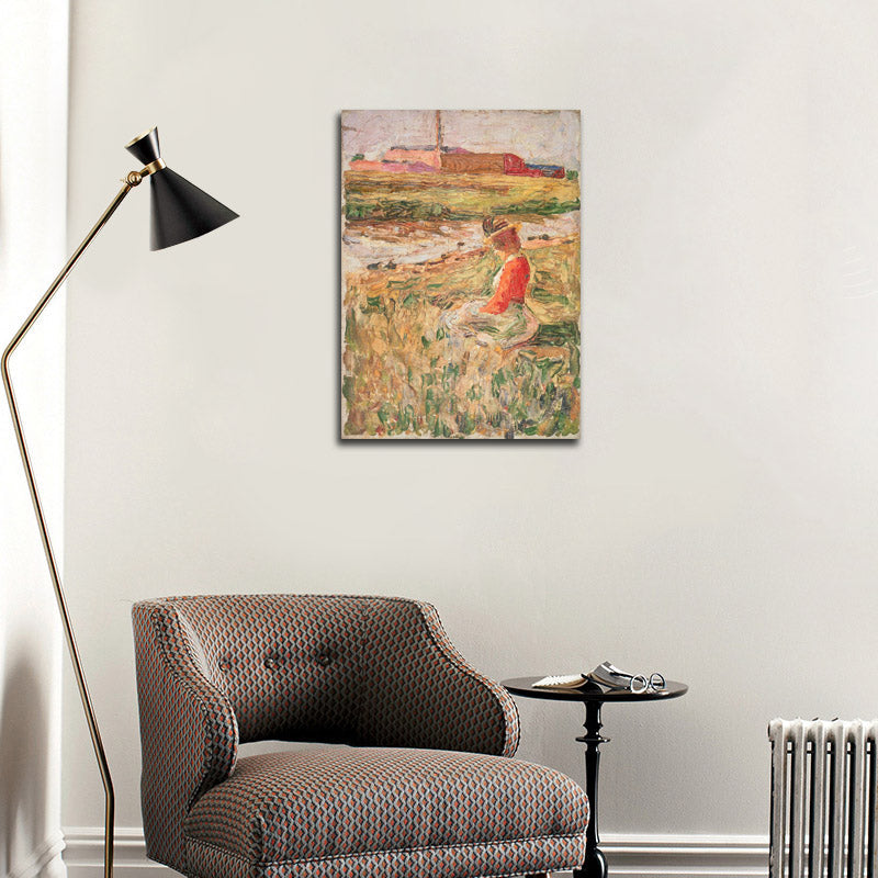 Wassily Kandinsky’s Lady Sitting on the Grass radiates a peaceful and introspective mood. Painted during his earlier representational period, this piece combines delicate brushwork with vibrant colors to evoke a serene connection with nature. A beautiful addition to any collection, it’s ideal for creating a calm, inviting atmosphere in your home or as a gift for fans of early modern art.