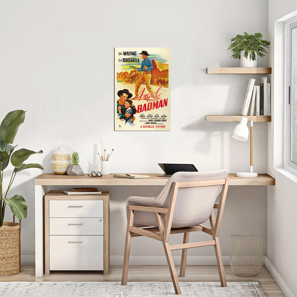 This reprint of Angel and the Badman (1947), starring John Wayne, features bold and dramatic artwork that reflects the film's themes of redemption, romance, and western justice.