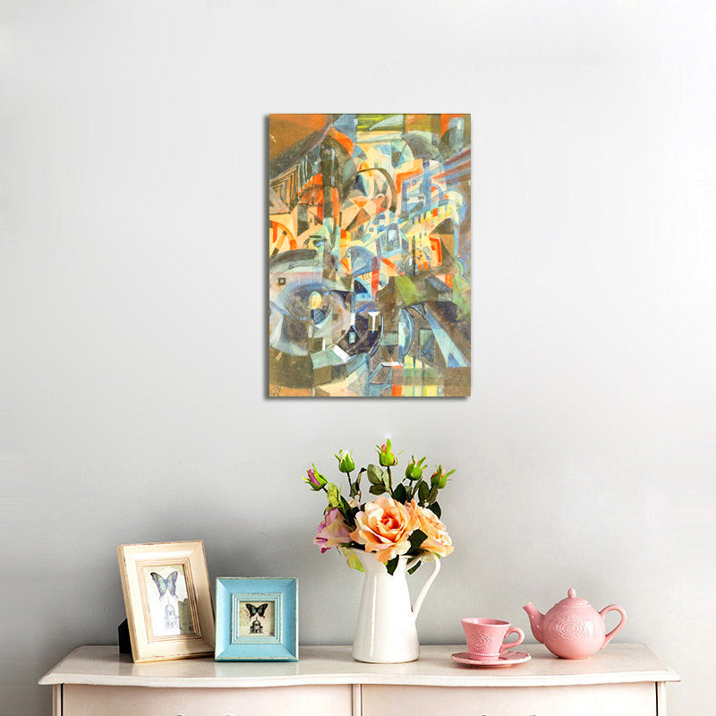 Gaganendranath Tagore’s "City in the Night" presents an abstracted cityscape illuminated by moonlight. With geometric shapes and muted tones, Tagore creates a dreamlike atmosphere, blending traditional Indian art influences with early modernist abstraction.