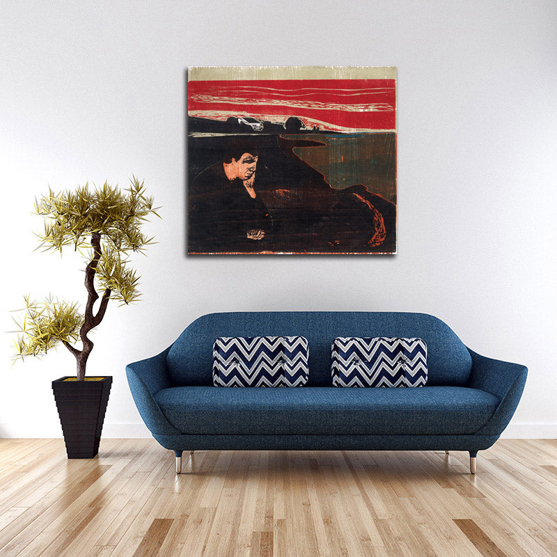 Edvard Munch’s Evening. Melancholy I expresses deep introspection and emotional resonance. This poignant composition, blending the solitude of twilight with Munch’s characteristic psychological depth, is a powerful exploration of human emotion.
