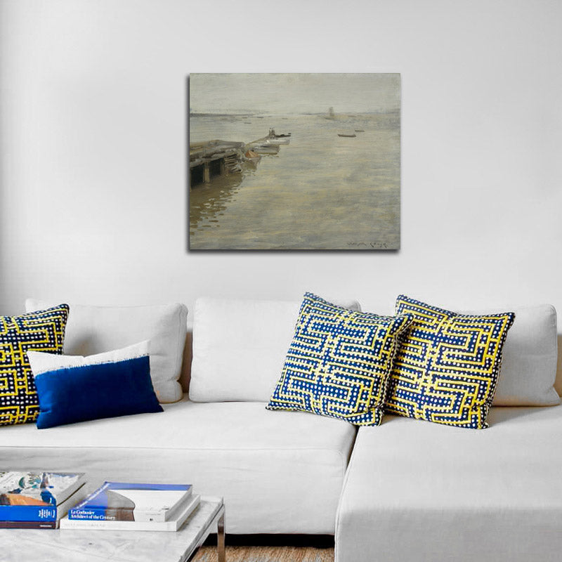 A Gray Day by William Merritt Chase presents a serene and atmospheric view of a gray day. Chase’s use of color and light creates a subtle and reflective mood, highlighting his mastery of capturing atmospheric effects.