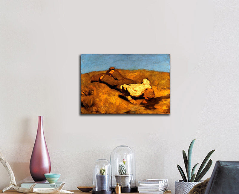 "Boy at the Spring" by Albin Egger-Lienz presents a rustic scene of a young boy in a rural landscape. The earthy tones and simplicity of the composition evoke a sense of calm and purity, reflecting the artist’s connection to nature. This print is perfect for those who appreciate pastoral beauty and tranquility in art.