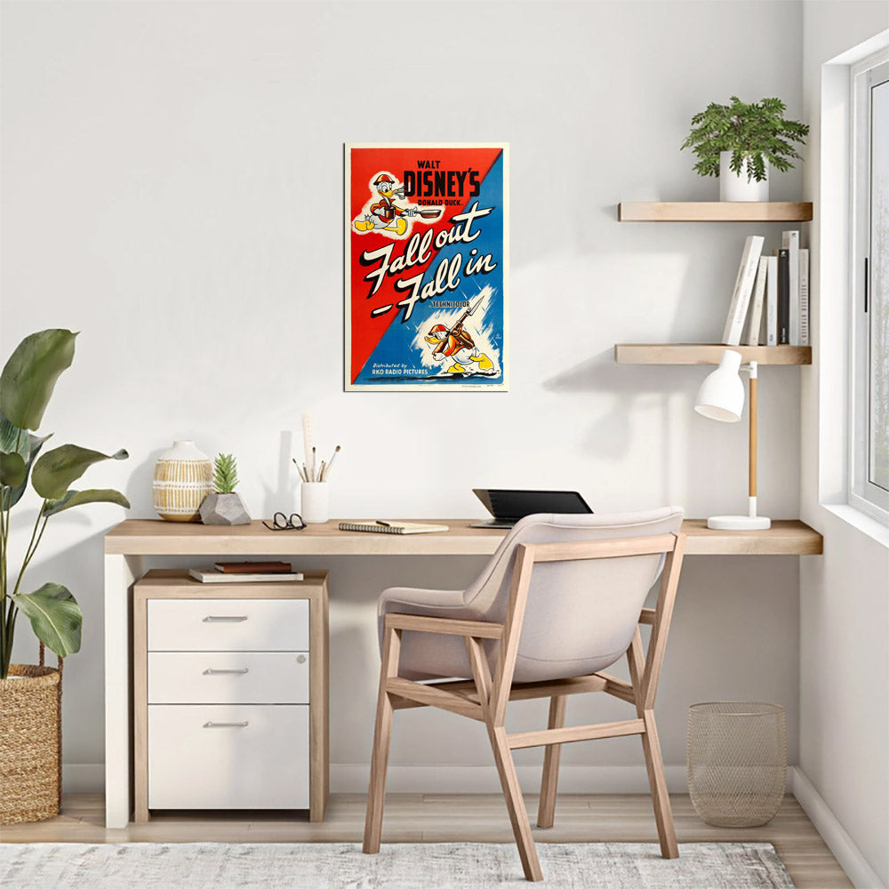 This reprint of Donald Duck in Fall Out-Fall In (1943), a wartime animated short, features Donald Duck in a humorous military setting, portrayed in vibrant and action-packed artwork that captures his antics.