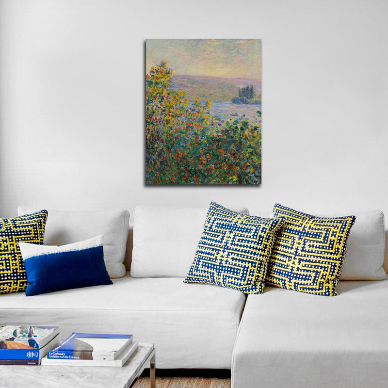 Claude Monet’s Flower Beds at Vétheuil is a radiant portrayal of the artist’s garden. Monet’s impressionistic brushwork and vibrant palette capture the lush beauty of the blooming flower beds.