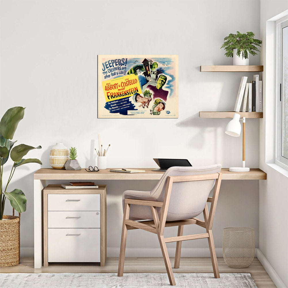 This Style A reprint of Abbott and Costello Meet Frankenstein (1948) features iconic comedy-horror artwork showcasing the legendary duo's humorous encounter with classic monsters like Frankenstein and Dracula.