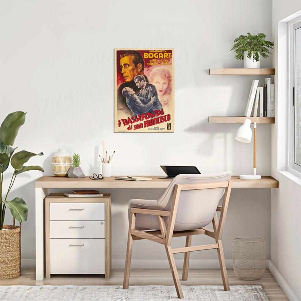 This Italian reprint of Knock on Any Door (1949), a courtroom drama starring Humphrey Bogart, features intense and dramatic artwork that captures the film’s exploration of crime and justice.