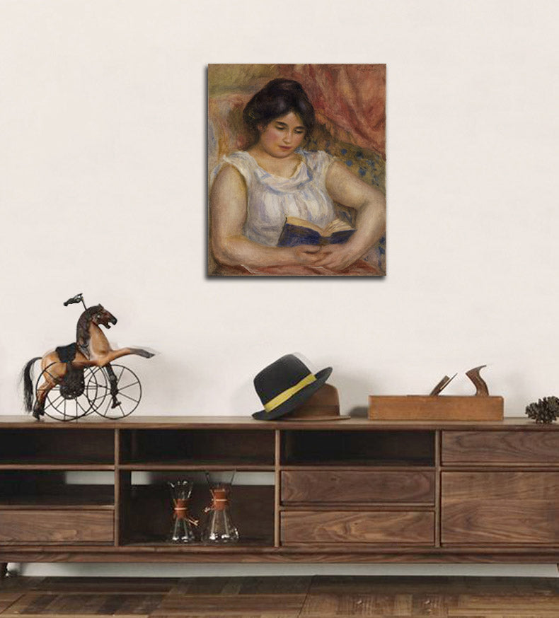 Gabrielle Reading by Pierre-Auguste Renoir depicts the artist’s wife, Gabrielle, engrossed in a moment of quiet reflection as she reads. Renoir’s use of soft lighting and warm tones creates an intimate and serene atmosphere, emphasizing Gabrielle’s peaceful state of mind.