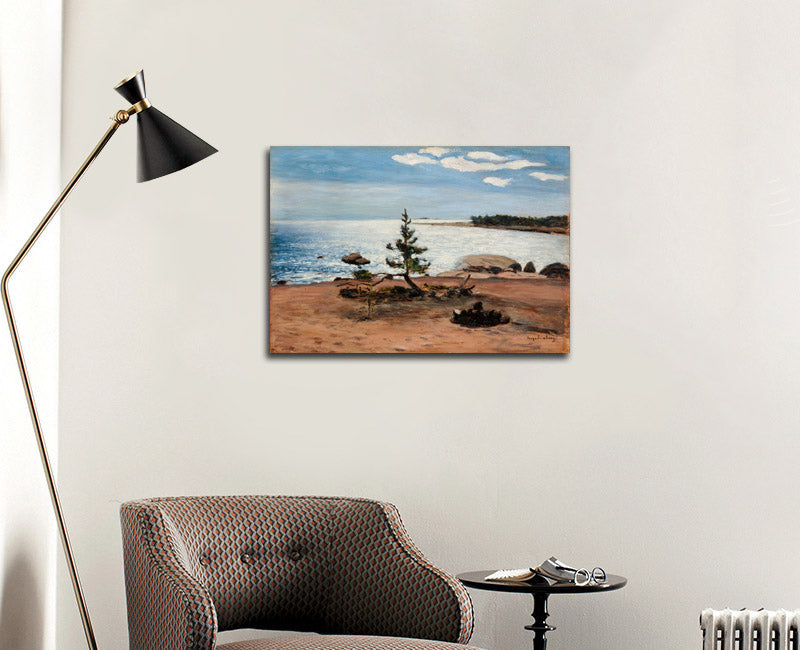 This artwork is perfect for those interested in Simberg’s seascapes and his portrayal of calm and reflective maritime scenes.