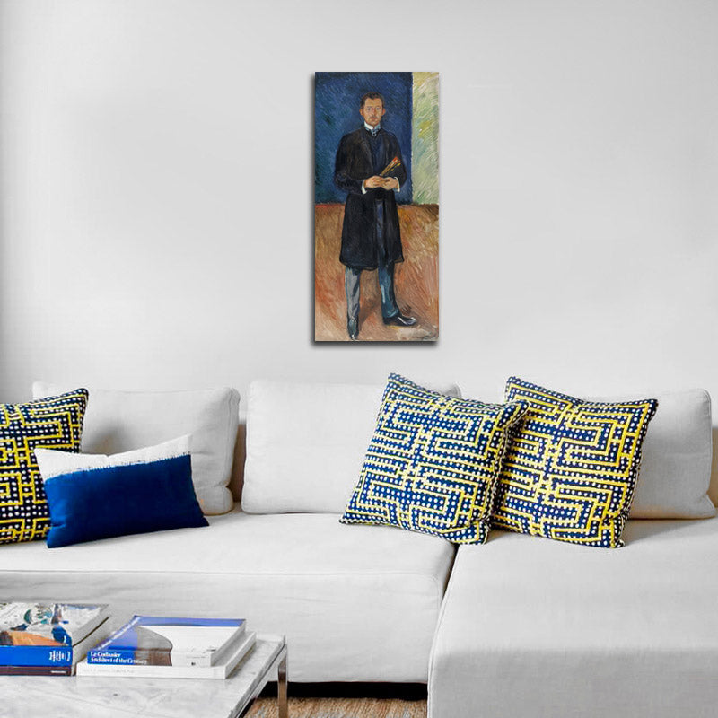 This artwork is a must-have for those who appreciate the depth and intensity of Munch’s work. Available as both an art print on paper and a canvas, it is perfect for adding a touch of introspective beauty to your space. Whether displayed in a study, living room, or gallery wall, Self-Portrait with Brushes is a statement piece that will captivate and inspire.