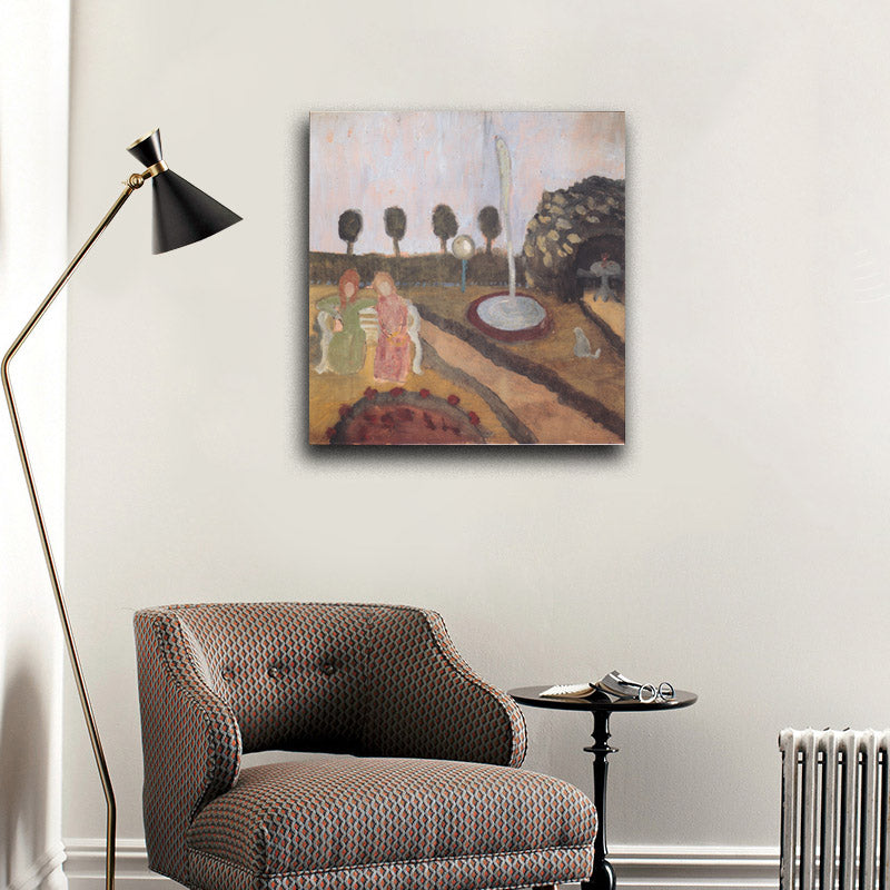Two women in the garden with fountain - by Paula Modersohn-Becker