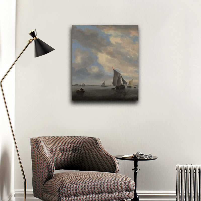 View of Sailing Boats on a Lake - by Salomon van Ruysdael