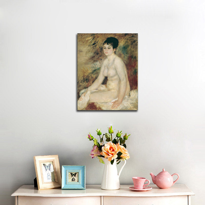 After the Bath by Pierre-Auguste Renoir is a charming and sensuous depiction of a figure emerging from the bath. Renoir’s signature use of vibrant colors and soft brushstrokes brings out the warmth and tenderness of the scene. The painting highlights Renoir’s ability to capture the delicate beauty of the human form and the intimate moments of daily life with a rich and engaging palette.